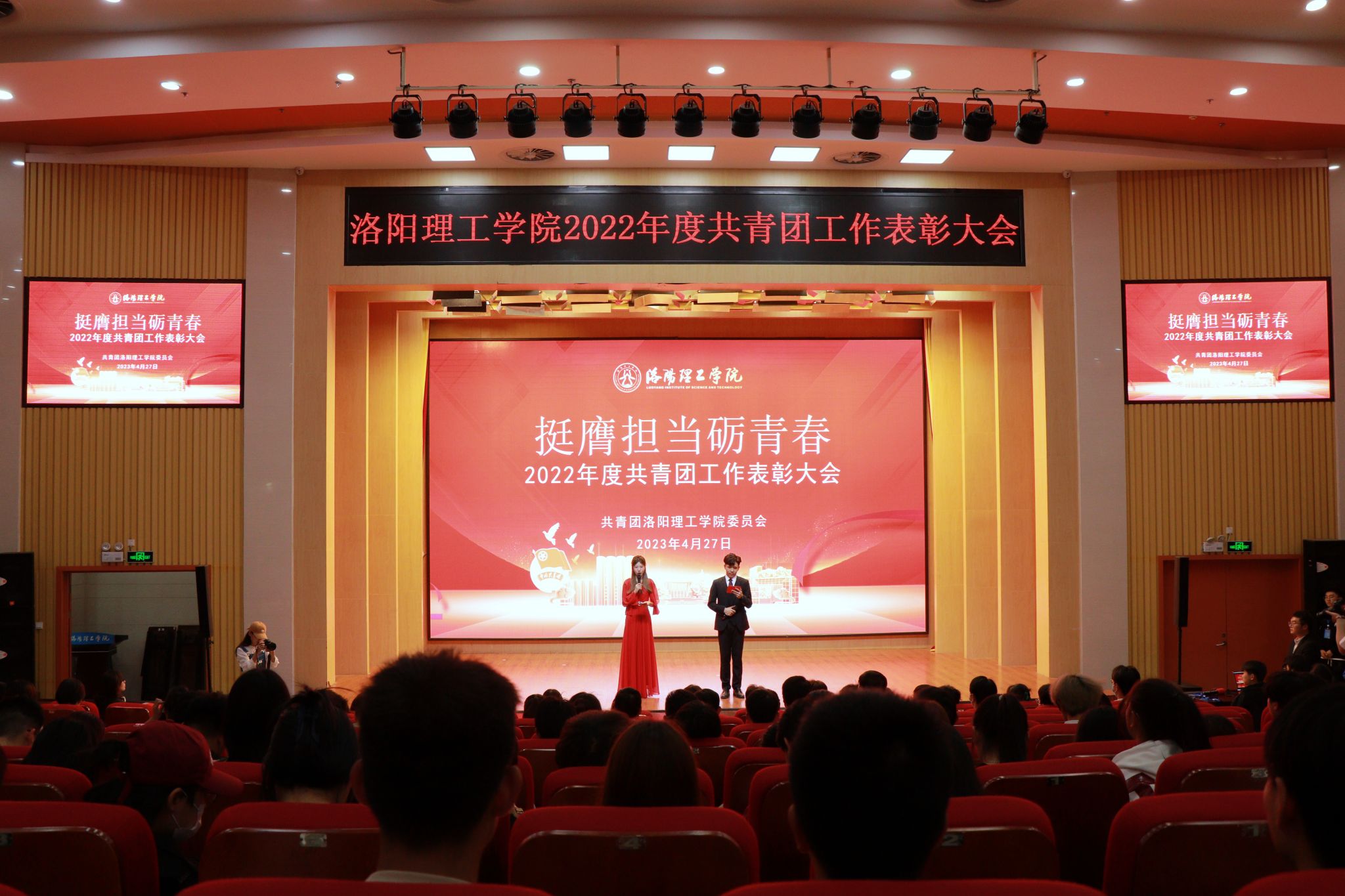 为深入学习贯彻落实党的二十大精神,纪念“五四运动”104周年,弘扬“爱国、进步、民主、科学”的五四精神,4月27日下午,以“挺膺担当 砺青春”为主题的洛阳388vip太阳集团2022年共青团工作表彰大会在王城校区图书信息中心报告厅举行。校党委副书记胡恩立出席大会,党委宣传部、学生处、校团委、大学科技园管委会等部门负责人及各二级学院党委副书记、团委书记、团员青年共600余人参加了大会。