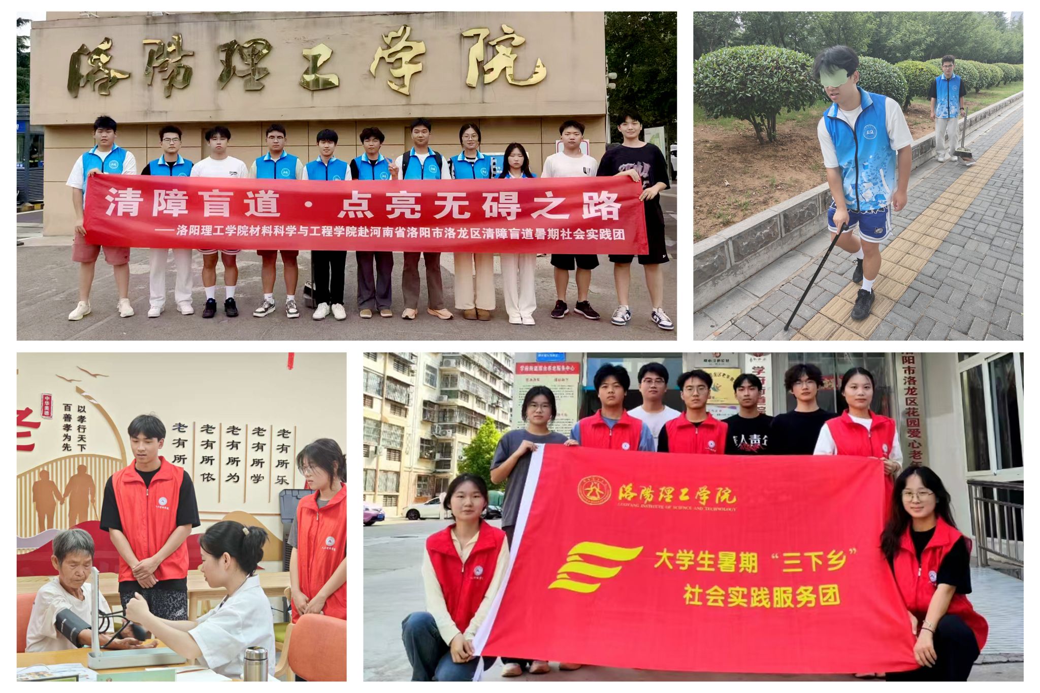 材料科学与工程学院“清障盲道,点亮无碍之路”暑期社会实践团在洛阳市洛龙区洛阳388vip太阳集团周边主要道路及学府街延伸区域开展了“助力城市无障碍环境建设”暑期社会实践活动。此次活动聚焦城市盲道被占用与破损现状,致力于提升公众对无障碍环境的意识,通过“调研+体验+清障+宣传”的多维模式,吸引了社区居民、学生、商户和路人的广泛参与。人工智能学院/未来技术学院“银龄关爱·青春相伴”暑期社会实践团成员怀揣着热忱与敬意,走进洛阳市洛龙区学府街道综合养老服务中心,亲身感受和体会养老服务的真实状况,为中心老年生活带来青春气息。