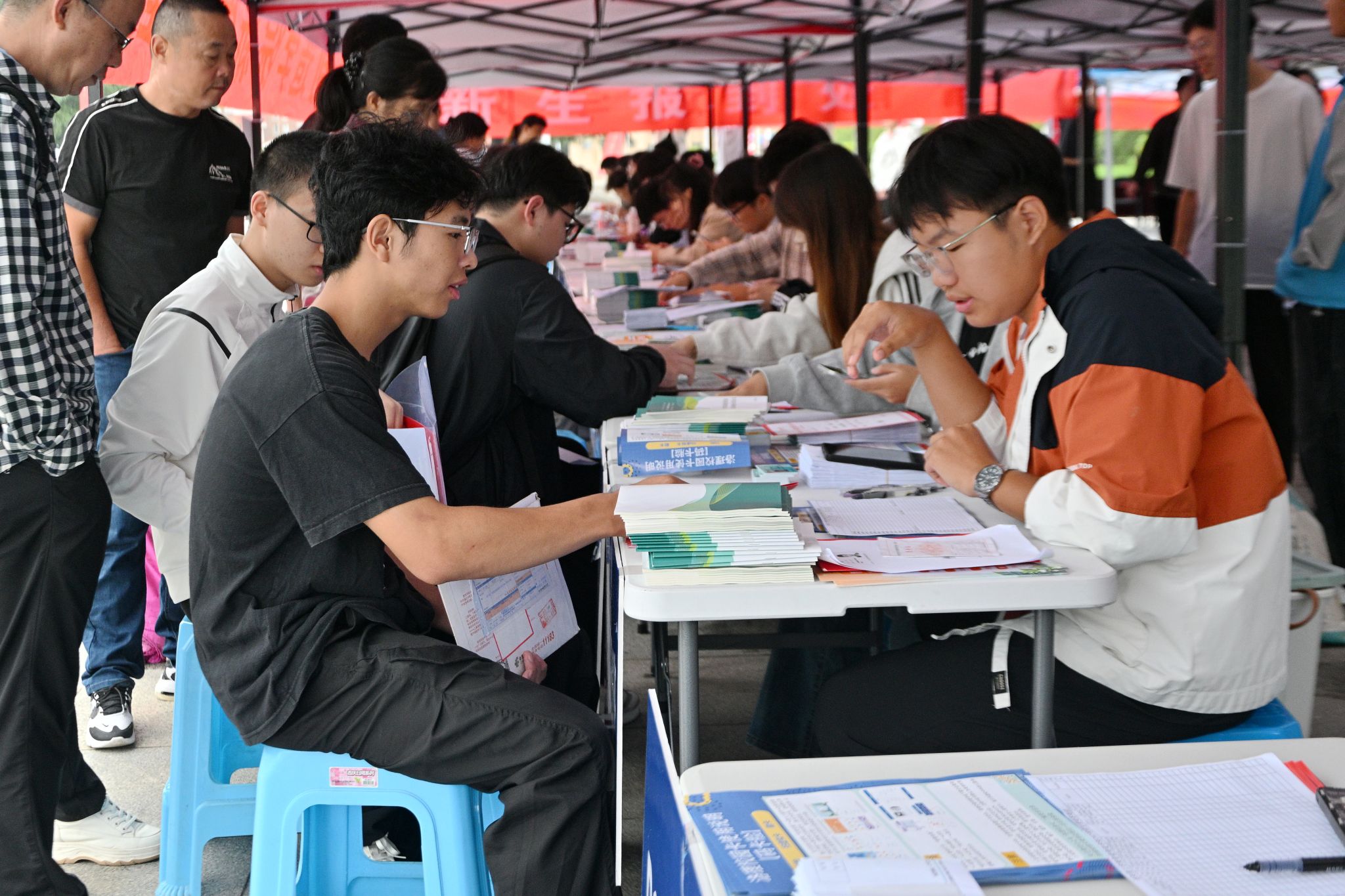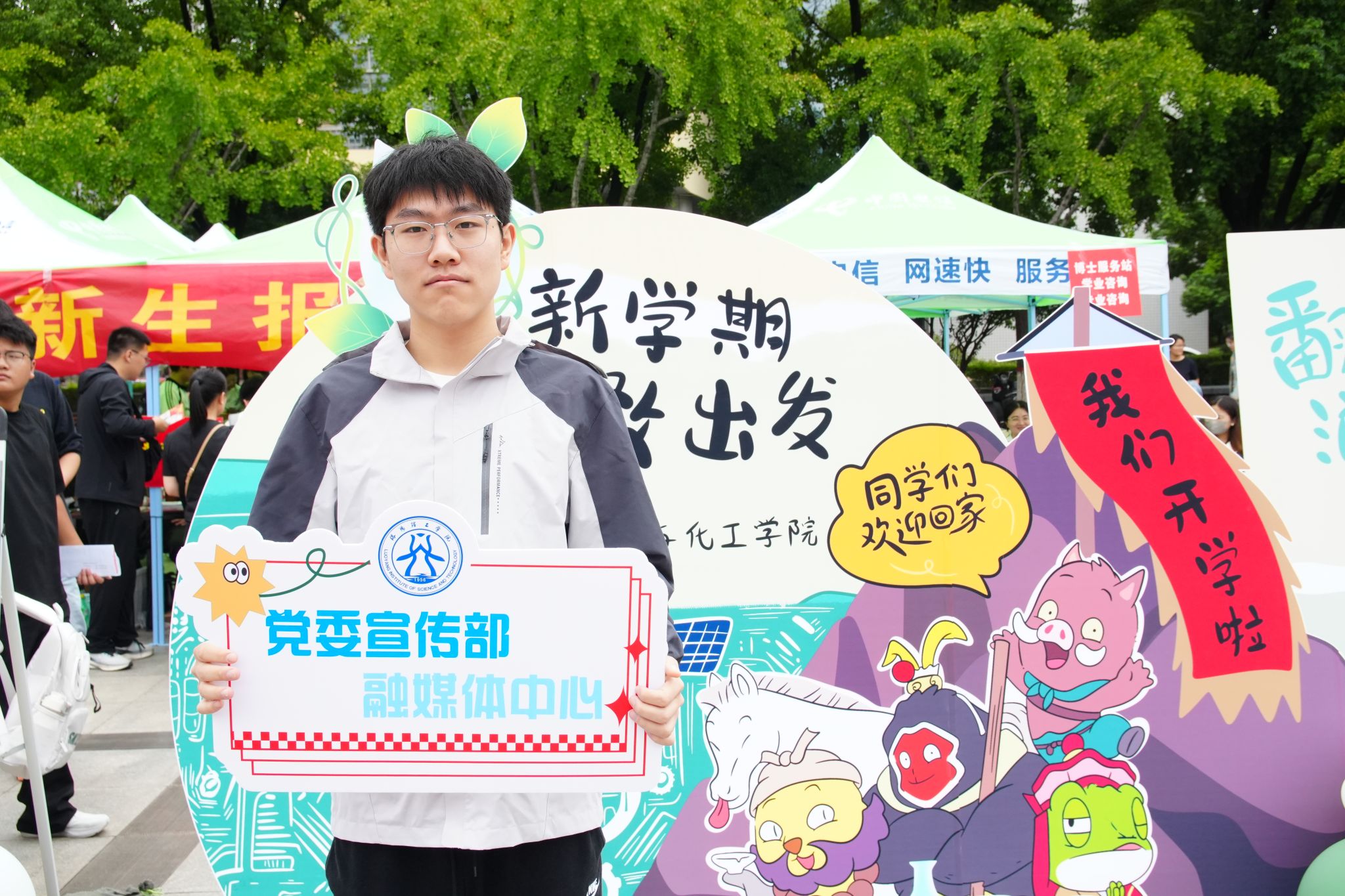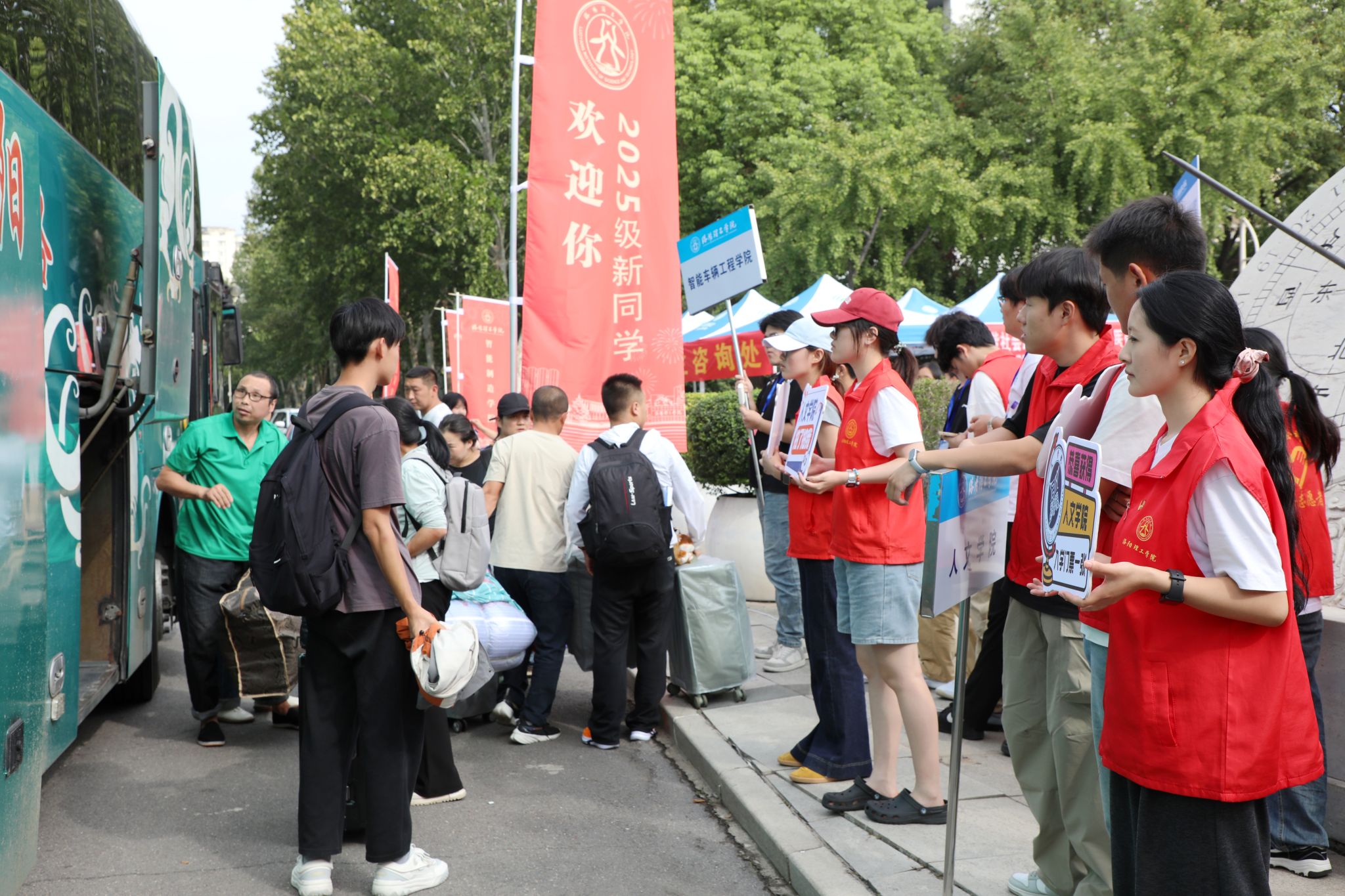 为确保迎新工作安全、高效、温馨有序推进,学校提前召开迎新工作部署会,构建“校院联动、部门协同、全员参与”的工作体系。从新生报到流程优化、校园环境美化,到餐饮保障、住宿安排、家长送行车辆的出入等,每一个环节都反复打磨。各学院结合学科特色,打造了独具亮点的迎新展台与打卡点。校园内,清晰的指示牌引导新生前往报到点,志愿者服务站随处可见,身着统一服装的师生志愿者们热情地为新生及家长提供行李搬运、报到指引、校园讲解等服务,一句句“同学你好”“这边请”,让初来乍到的新生感受到家一般的温暖。