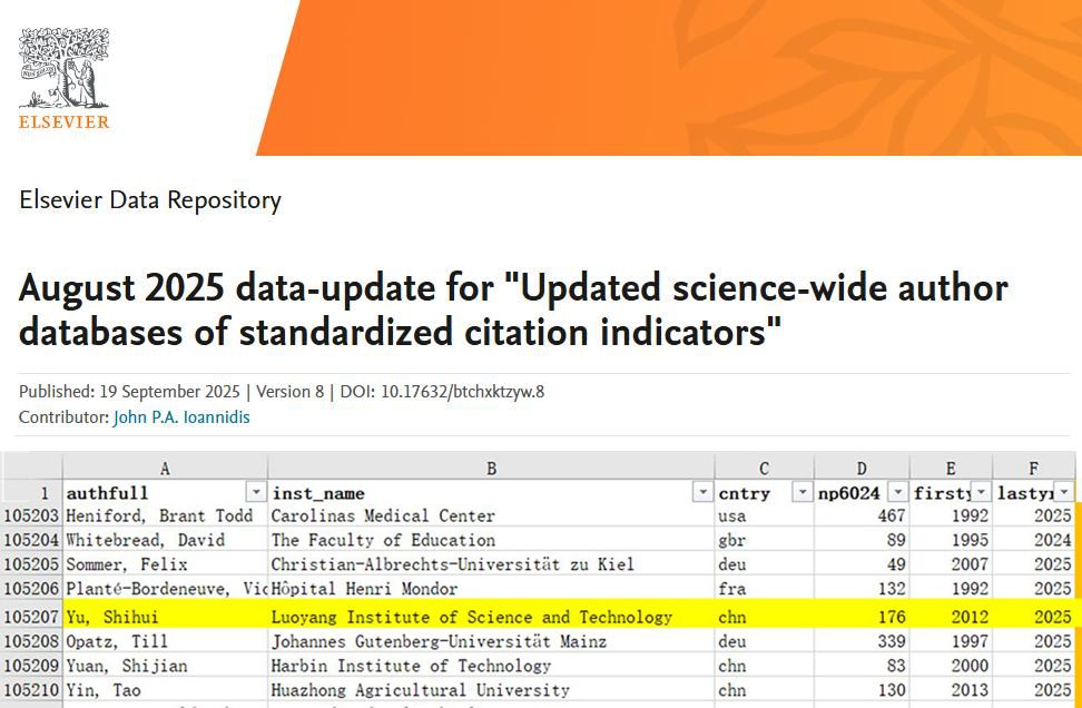 该榜单以Scopus数据库为依据,基于引用次数、H指数、HM指数等六项关键指标,对科学家长期科研表现进行综合评估。榜单涵盖全球近24万名学者,分为22个学科领域和174个细分子领域,旨在客观反映科学家的学术影响力。在2025年榜单中,共有31685名中国科学家入选,于仕辉博士位列全球科学家第105207名、中国科学家第12277名。