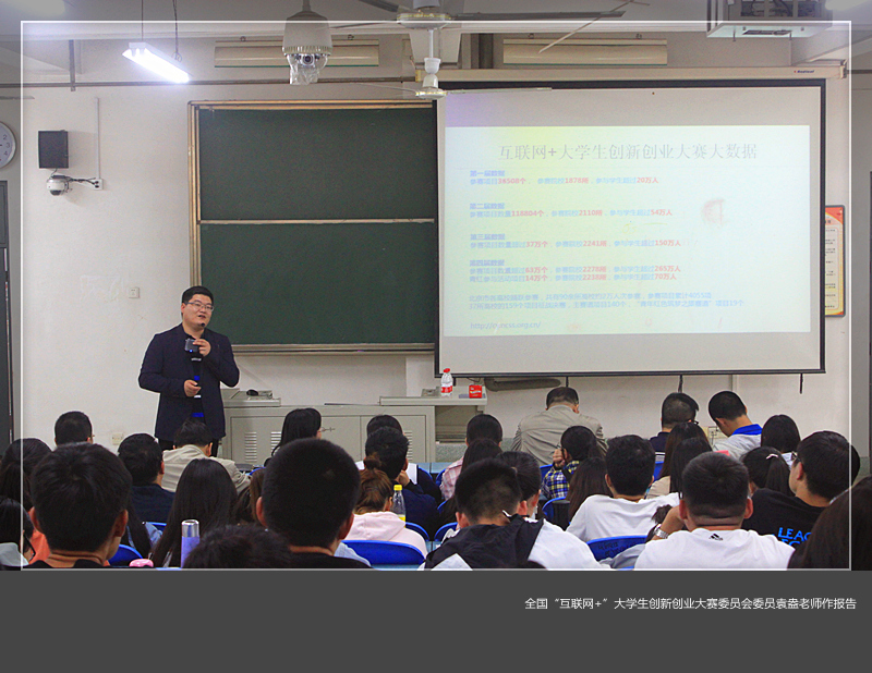 5月9日下午,上海生态科技城?河南科诚科技发展有限公司总经理、全国“互联网+”大学生创新创业大赛委员会委员袁盎,应邀到我校作题为《“互联网+”大学生创新创业项目孵化及参赛指导》的报告。环化学院全体教师和大学生科研助理200余人参加了本次活动。