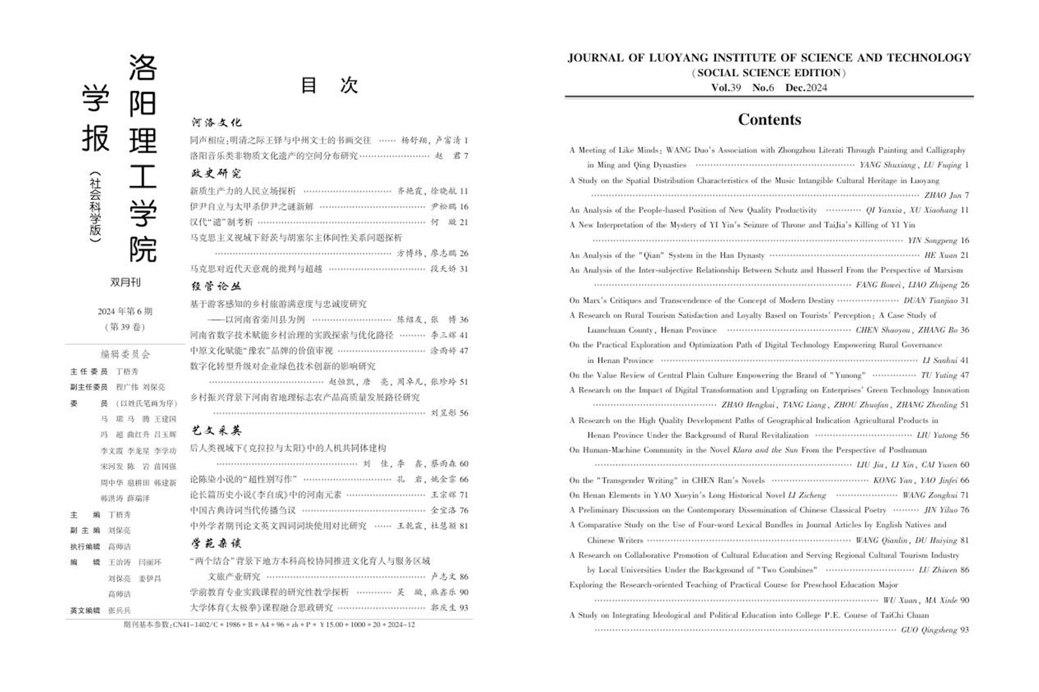 《洛阳388vip太阳集团学报(社会科学版)》2024年第6期目次