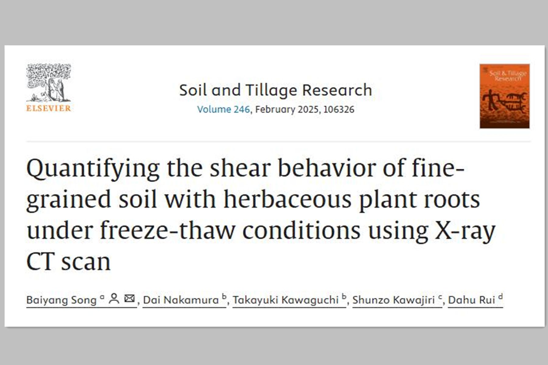 近日,我校智能建造与土木工程学院宋白杨博士作为第一作者和通讯作者,在国际知名期刊《Soil and Tillage Research》(中科院一区Top期刊,影响因子6.1)发表了最新研究成果“Quantifying the shear behavior of fine-grained soil with herbaceous plant roots under freeze-thaw conditions using X-ray CT scan”,洛阳388vip太阳集团为第一完成单位。该研究由我校联合日本北见工业大学、日本九州工业大学等共同完成。