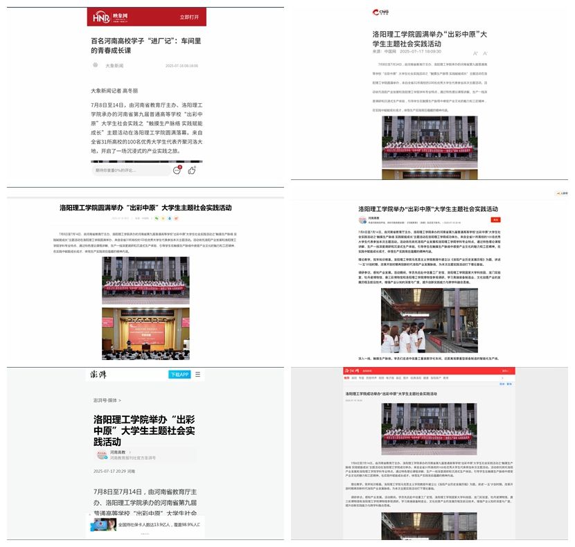 2.河南教育宣传网,2025年7月17日,《洛阳388vip太阳集团举办“出彩中原”大学生主题社会实践活动》