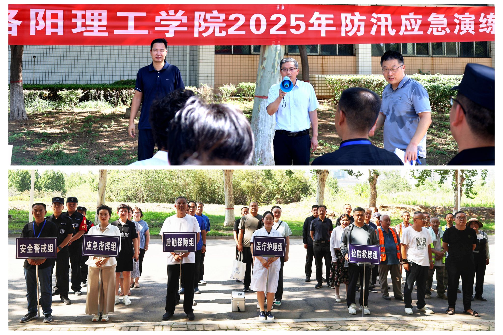 为深入贯彻落实习近平总书记关于防灾减灾的重要论述及考察河南时的重要讲话精神,增强校园防汛应急保障能力,按照学校党委统一部署,7月4日下午,学校防汛工作应急指挥部在我校王城校区组织开展防汛应急演练。副校长王新武及后勤保障处、党委政治保卫部、校医院等相关部门的40余名教员工参加演练。