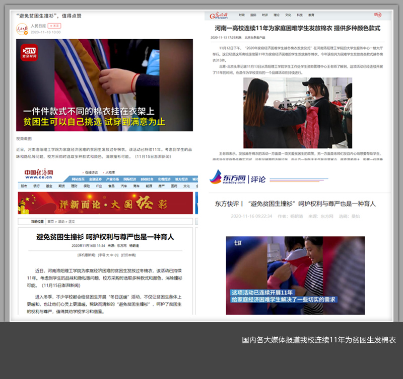 30 20201117 河南青年网 情暖三冬 洛阳理工连续11年为贫困生发放越冬棉衣 图文报道 http://www.hnynet.com.cn/luoyang/article/1/1328570236508704768?t