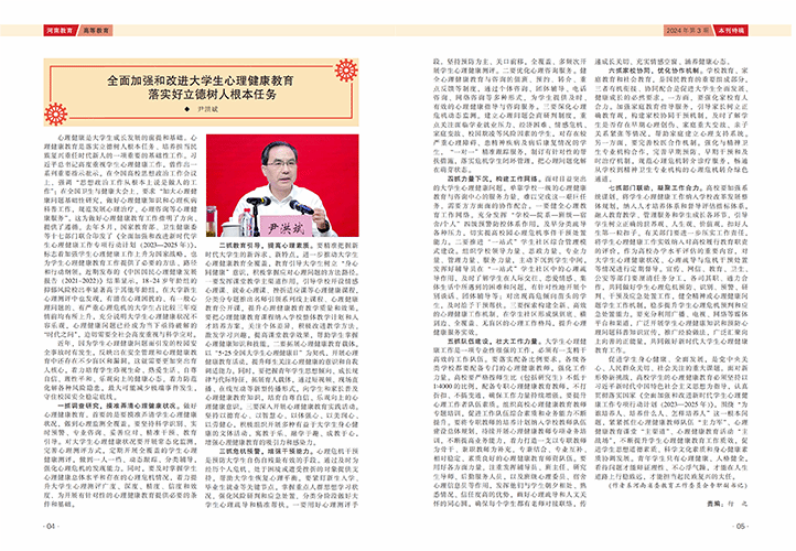 《河南教育》刊发尹洪斌副书记文章《全面加强和改进大学生心理健康教育 落实好立德树人根本任务》