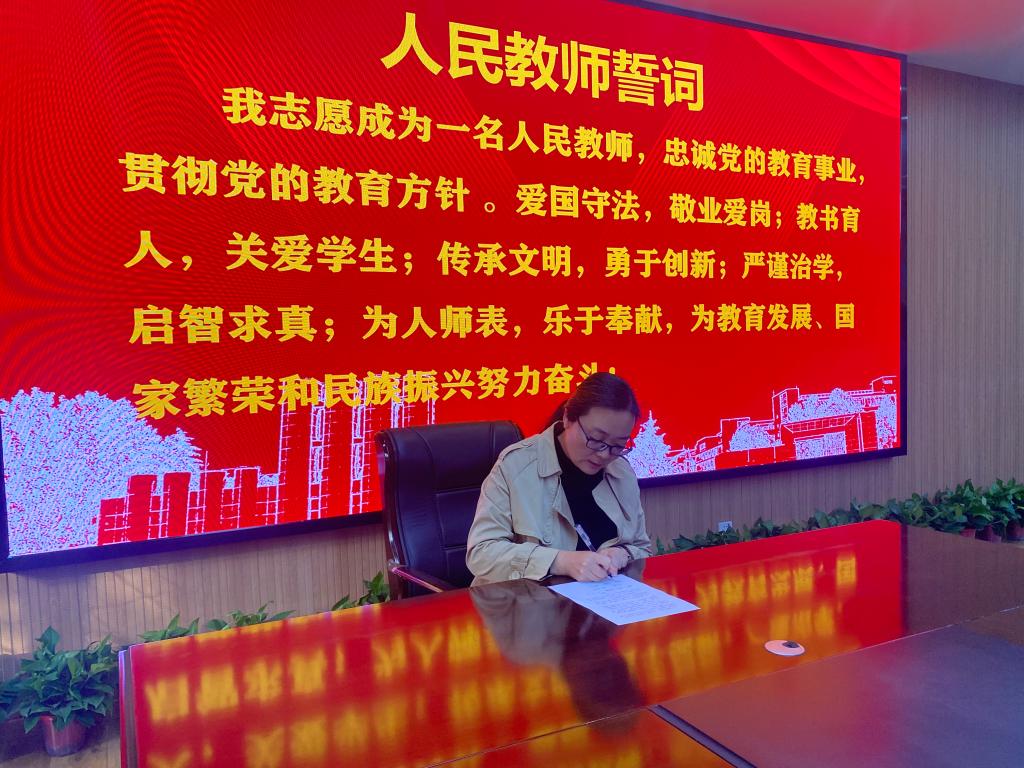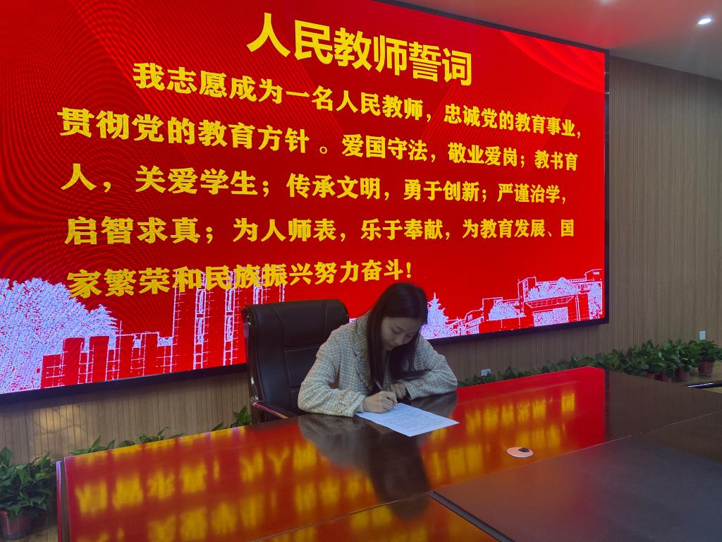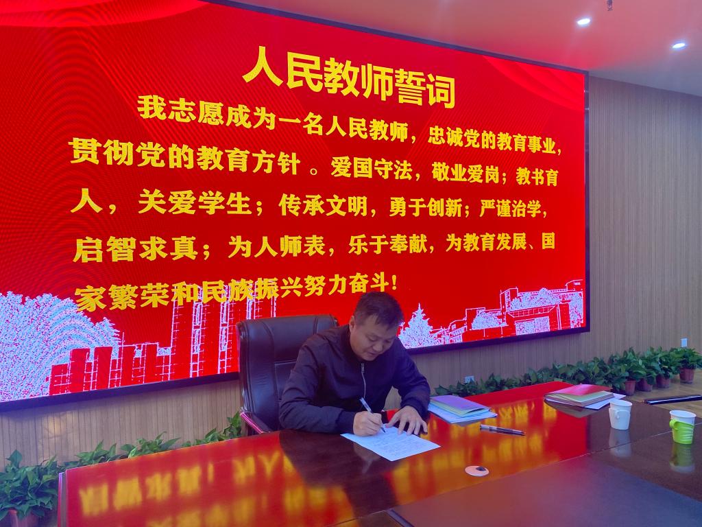支部书记徐光秀结合党史学习教育对支部全体党员提出要求,他强调,一是要持续开展党史学习教育,不断增强理想信念和党性修养。二是把党史学习教育落实落地,做到悟思想更深化,办实事更细化,宣传教育更强化。三是把党史学习教育走深走实,营造班子成员带头学党史,支部党员人人学的氛围。最后在徐光秀同志的带领下,全体党员举起右手重温教师誓词,并签订了《洛阳388vip太阳集团教师行为规范承诺书》。
