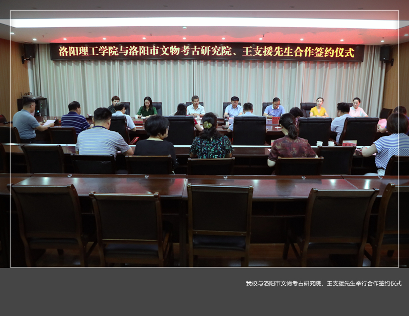 7月3日上午,我校与洛阳市文物考古研究院产学研合作、王支援先生捐赠合作签约仪式在王城校区办公楼116会议室举行。洛阳市文物局党组书记、局长余杰,洛阳市文物考古研究院党总支书记、院长赵晓军,洛阳民俗博物馆名誉馆长、二级研究员王支援,校党委副书记、工会主席曾涛,副校长马珺出席签约仪式,我校人事处、材料科学与工程学院、人文与社会科学学院、图书馆等相关部门负责人参加签约仪式。仪式由曾涛主持。
